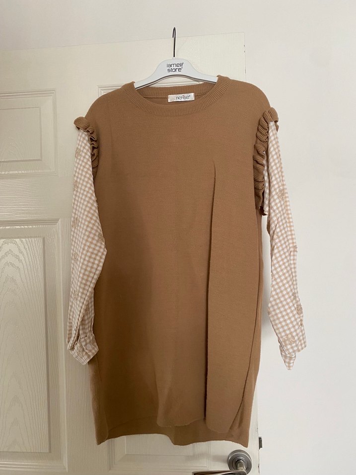 Triko tuniktir kolları gömlek tarzındadır