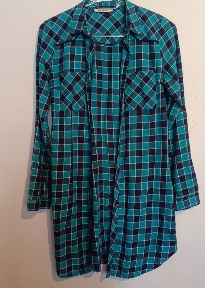 Ürün ekoseli turkuaz renkte XS beden tunik gömlektir.Hic giyilmedi. Etiketi yeni söküldü ama giyilmedi.