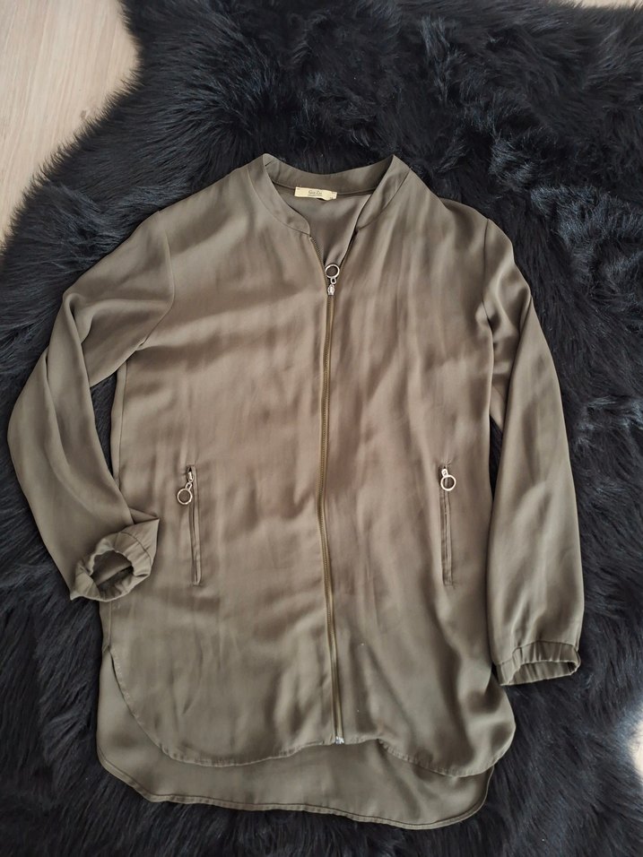 Haki yeşil, hakim yaka, fermuarlı, arka boy 82cm ön boy 75cm,koltuk altından koltuk altına 52cm,basen çevresi 100cm,yepyeni
