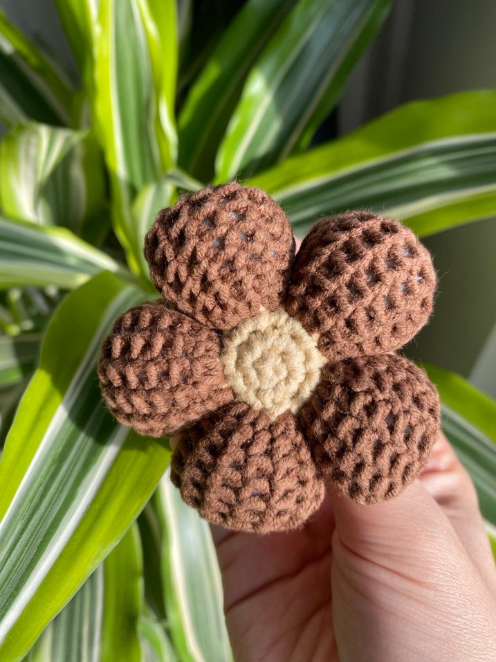 Tunus İşi Örgü Kahverengi Çiçek Toka