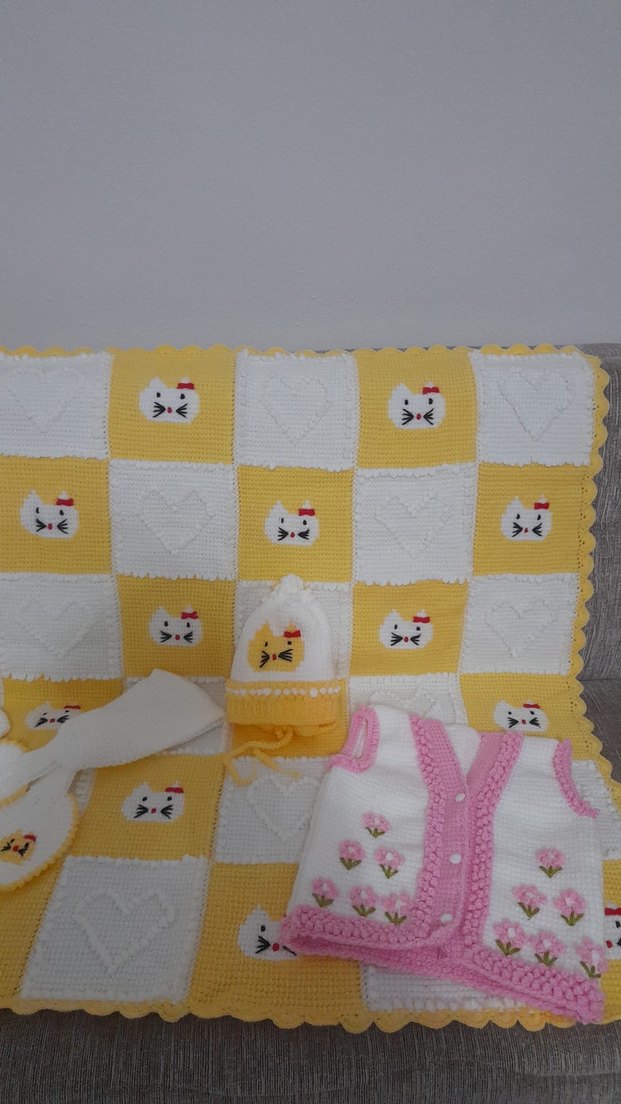 Tunus işi el örgüsü sıfır bebek battaniyesi takımı