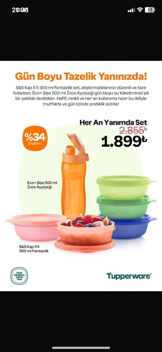 Tupperware 300ml 5'li Kap Seti ve 500ml Eco+ Şişe