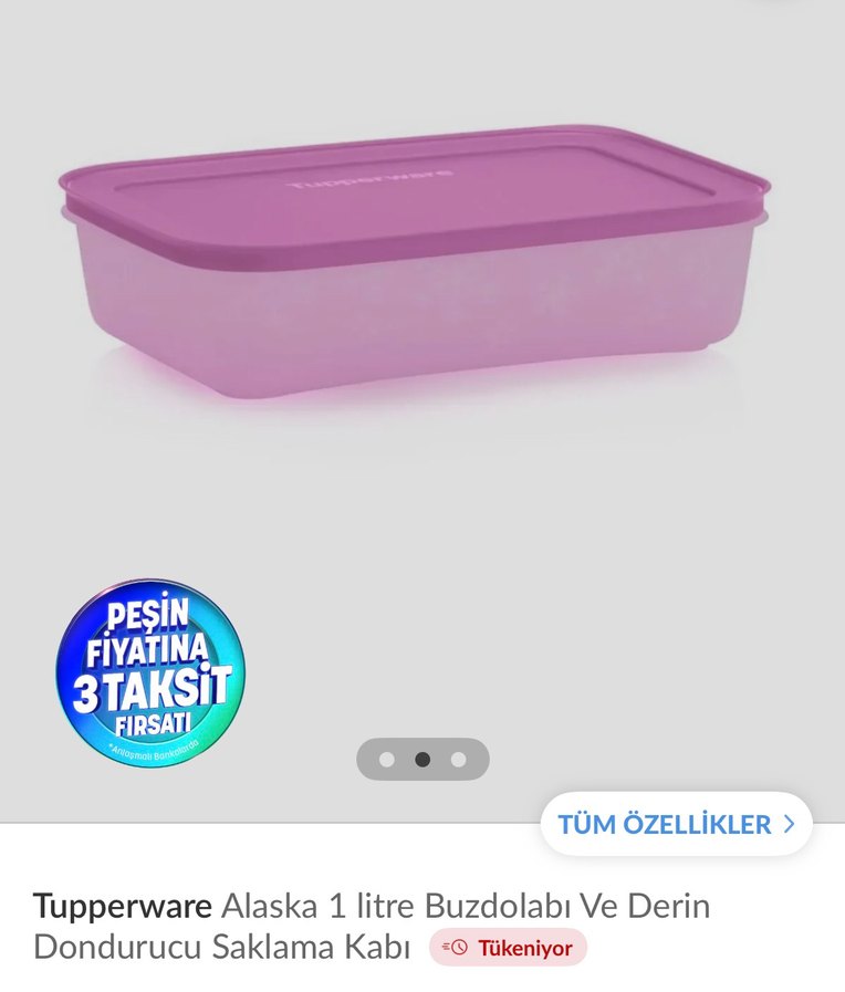 Tupperware Alaska 1 litre kapasiteye sahip, buzdolabı ve derin dondurucu için uygun saklama kabıdır. Temiz kullanıldı