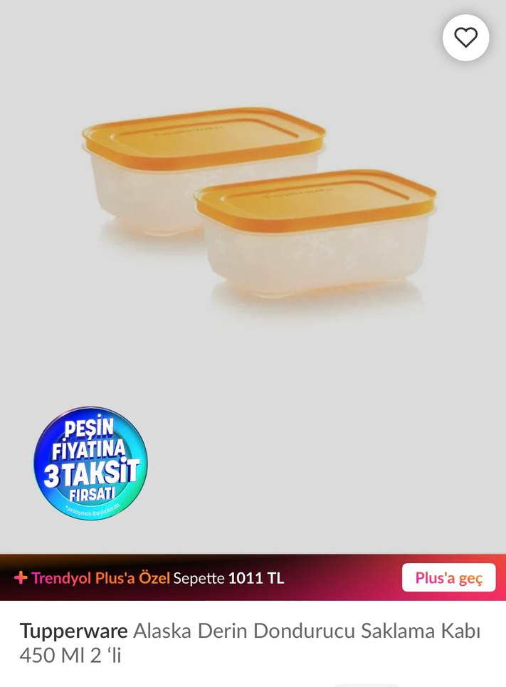 Tupperware Alaska'nın 450 ml kapasiteli, turuncu kapaklı 2'li derin dondurucu saklama kabı seti temiz kullanıldı