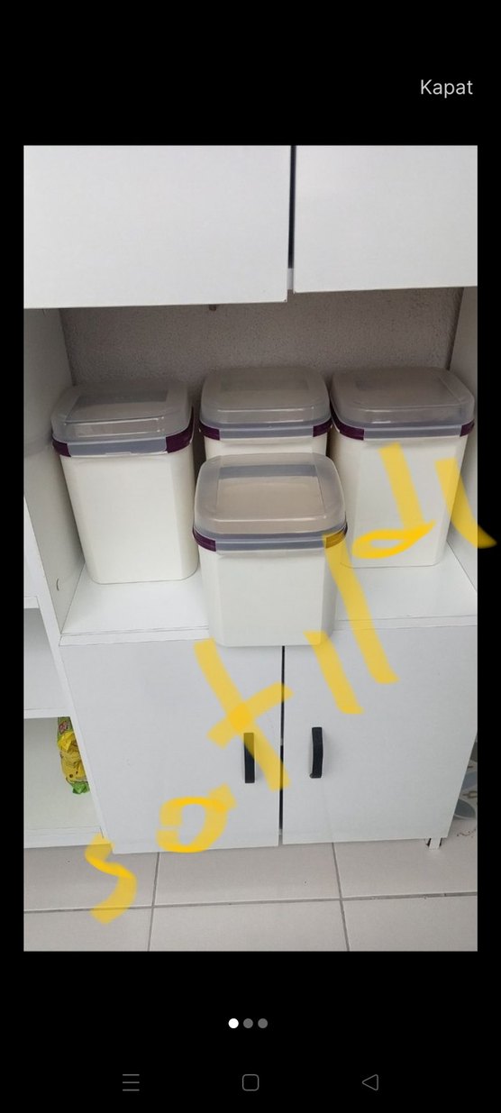 Mor kilitli kapaklara sahip beyaz plastik saklama kapları, mutfak eşyalarını düzenlemek için uygundur. Farklı boyutlarda set halinde.