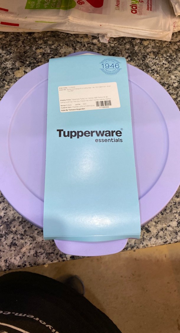 Tupperware Essentials serisine ait pastel mor saklama kabı, dayanıklı ve hava geçirmez kapakla tazeliği korur.