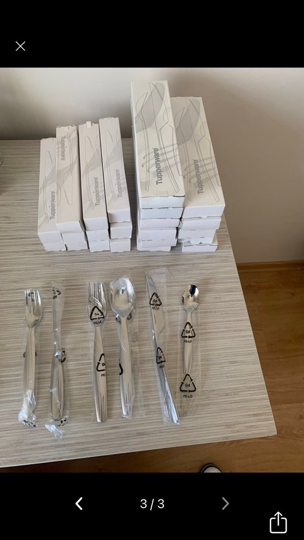Tupperware gri renk çatal ve kaşık seti, şık tasarımlı ve kutusunda. Sıfırdır
