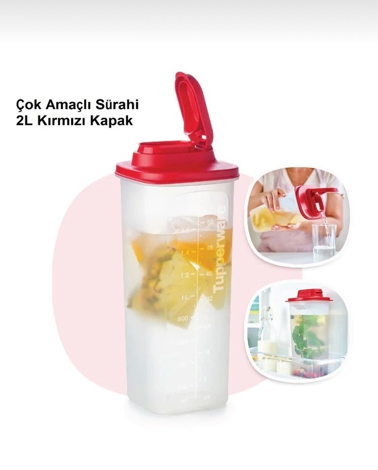 Tupperware Kırmızı Kapaklı Çok Amaçlı Sürahi 2L