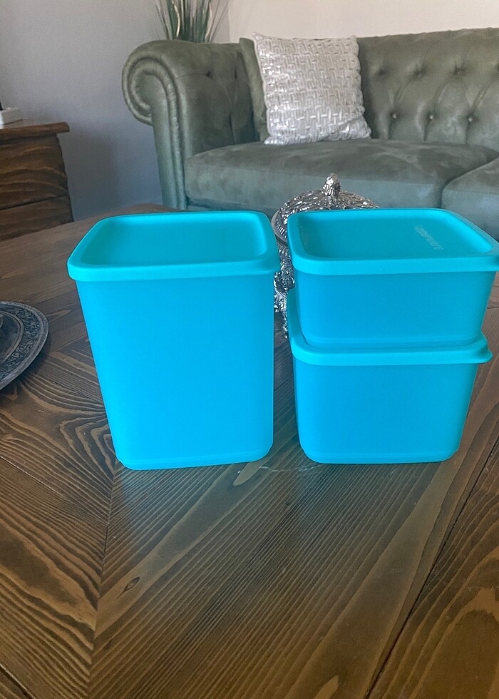 Tupperware kübik 3’lü set; 650 ml, 1 lt, 1.8 lt ebatlarında, sıkı kapaklı, iç içe ve üst üste yerleşim sağlar. Sıvı ve kuru gıdalarınıza uygundur. Sıfır üründür, set fiyatıdır. Not: renk görseldeki gibidir ne tam yeşil ne tam mavi, o yüzden turkuazı seçmek zorunda kaldım. Orijinal Tupperware ürünüdür.