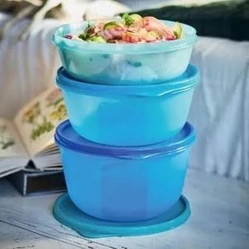 Üçlü mavi pastel plastik saklama kabı seti, yiyecekleri taze tutmak için uygun. 2 litre 1.5 litre 1 litre #tupperware #saklamakabi