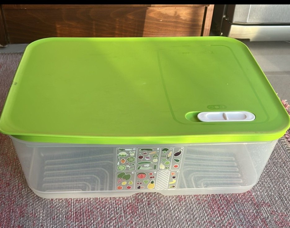 Tupperware plastik meyve sebze saklama kabı, güvenli kapaklı, mutfak eşyalarını düzenlemek için uygundur.