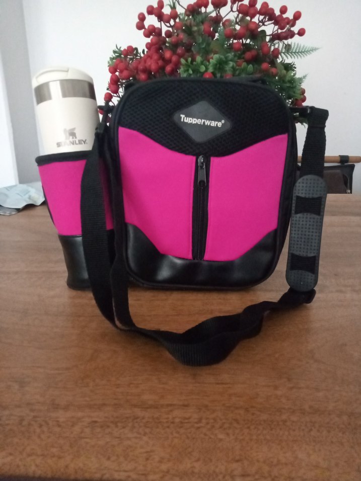 Tupperware soğuk tutma çantası suluk bölmeli herhangi bir deformasyon yok göründüğü gibi ölçüsü görselde mevcut