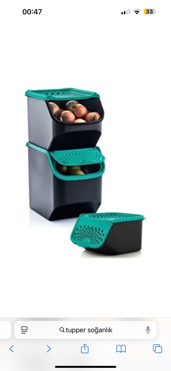 Hava alabilen delikli koyu yeşil kapaklara sahip üst üste konabilir siyah saklama kutuları, sebzeler için uygundur. Koku yapmaz. İnternetten fiyatına bakabilirsiniz
