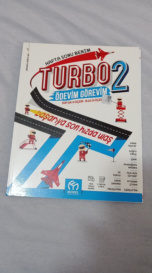 Turbo 2 Ödevim Görevim, genel tekrar, doğru yanlış işlemi, problem çözme ve 35 hapla konu anlatımı içeren sınav hazırlık kitabıdır.