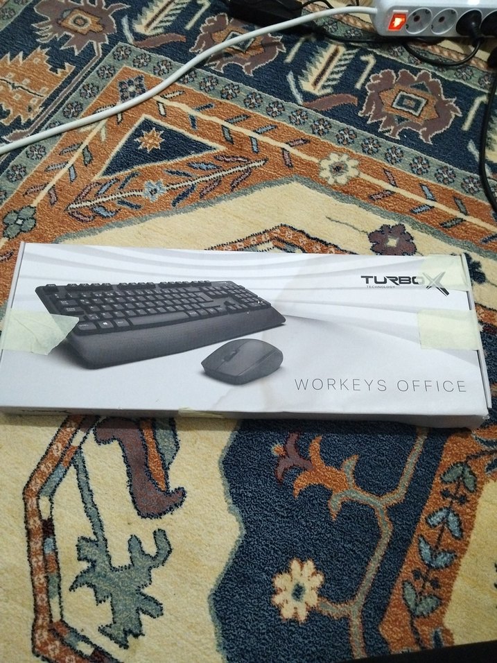 TurboX markalı, koyu haki renkte kablosuz klavye ve mouse seti. Klavyede tam düzen bulunur, set üzerinde WORKEYS OFFICE yazısı yer alır. ️ ! Ürün yenidir daha hiç kullanılmadı ancak bilgisayara takılan USB tuşu yoktur.