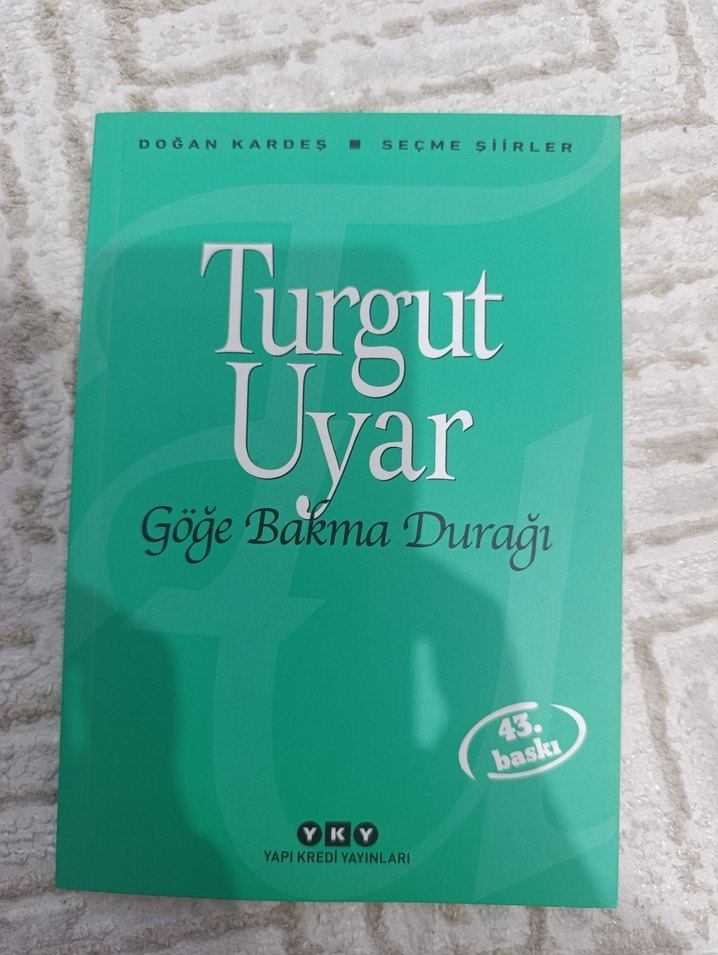 Turgut Uyar'ın seçme şiirlerini içeren, Yapı Kredi Yayınları tarafından yayımlanan 43. baskı Göğe Bakma Durağı şiir kitabı.