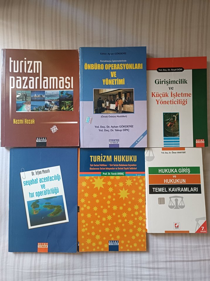 Turizm pazarlaması, önbüro operasyonları, girişimcilik, seyahat acentacılığı ve turizm hukuku konularında beş kitaplık set. Tekli fiyatıdır, isteyen toplu ve indirimli satış yapılır