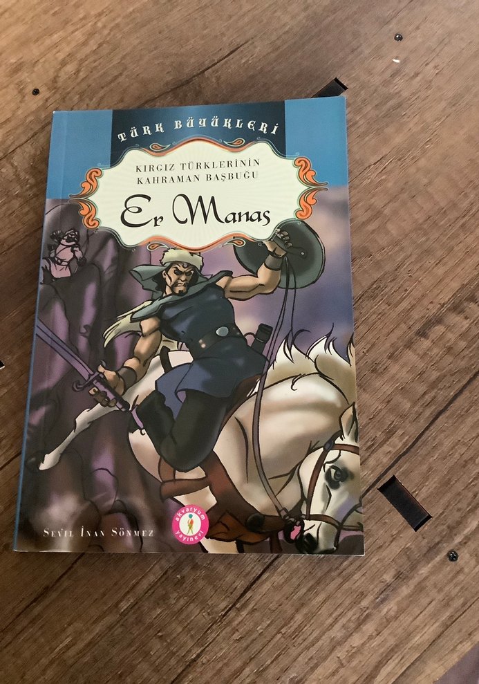 Kırgız Türklerinin kahramanı Er Manas'ın destansı hikayelerini anlatan, renkli çizimlerle desteklenmiş bir kitap. 88 sayfa