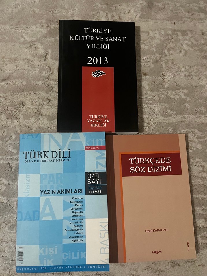 2013 Türkiye Kültür ve Sanat Yıllığı, 1981 tarihli Türk Dili dergisi özel sayısı ve Leyla Karahan Türkçede Söz Dizimi kitabı bulunuyor.