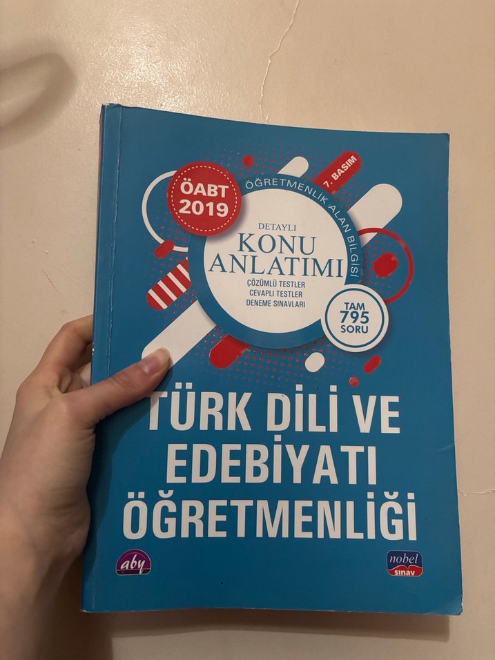 2019 yılına ait Türk Dili ve Edebiyatı öğretmenliği kitabı, detaylı konu anlatımı, çözümlü testler ve deneme sınavlarıyla toplam 795 soru içerir. Birkaç yazılmış yerleri var