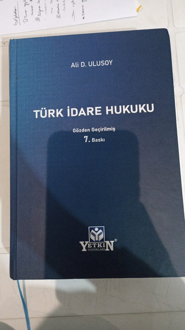 Ali D. Ulusoy'un gözden geçirilmiş 7. baskısı 'Türk İdare Hukuku', Yetkin yayınlarından. Türk idare hukukuna dair kapsamlı bir hukuk kitabı. sadece bir defa 70.sayfaya kadar okudum bazı yerlerin altını çizdim bu kadar onun dışında temiz kitap kullanmadım