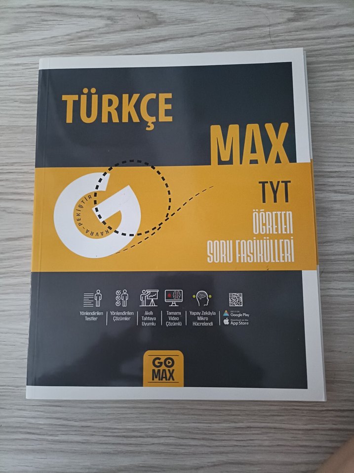 Türkçe Max TYT soru fasikülleri, yönlendirmeli testler, detaylı çözümler ve QR kod ile video anlatımları içerir. hiç ÇÖZÜLMEMİŞTİR