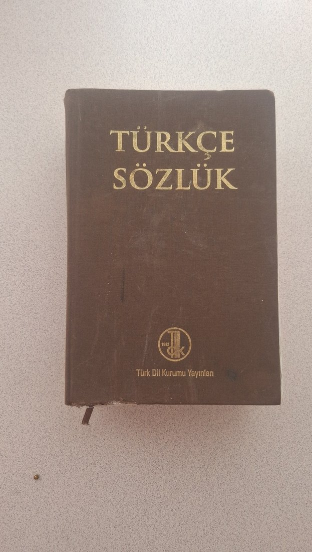 Türk Dil Kurumu tarafından yayımlanan, altın yaldızlı harflerle kaplı sert kapaklı Türkçe sözlük kitabı.Biraz yıpranmış eksik yok baya kalın ve büyük