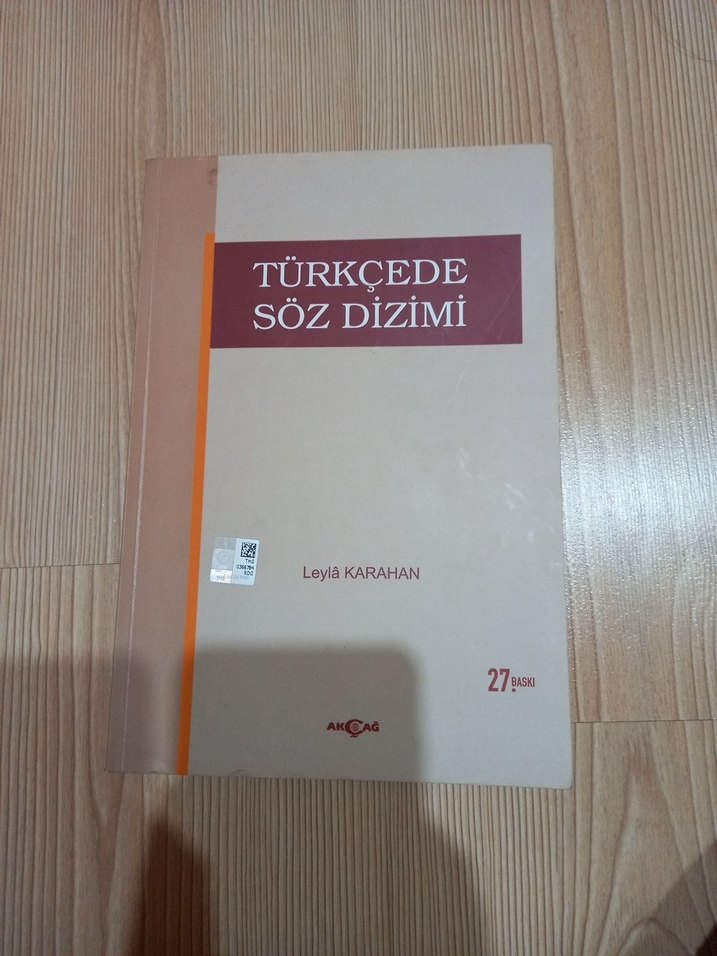 Leyla Karahan'ın 27. baskı Türkçede Söz Dizimi kitabı, Türkçe cümle yapısı ve dilbilgisi kurallarını detaylı şekilde ele alır. Kitapta sadece 1-2 sayfada bazı kelimelerin altı çizili. Herhangi bir yerinde yazı veya hasar yok