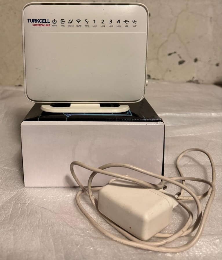 Beyaz renkli Turkcell Superonline güç bankası, birden fazla bağlantı göstergesi ile. Şarj kablosu dahildir. Model numarası TURKCELL1234. (çalışıyor)