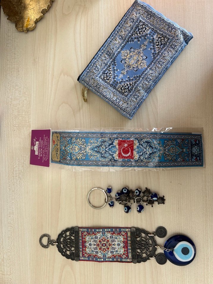 Türkiye tanıtıcı 4 parça yeni hediyelik eşya İçinde cüzdan, anahtarlık, nazar boncuğu ve kitap ayıracı bulunan yurtdışına hediye olarak götürülebilecek set