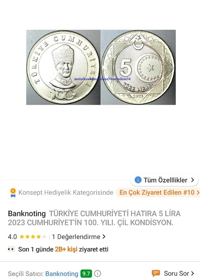 TÜRKİYE CUMHURİYETİ 100.YIL 5 LİRA KOLEKSİYON PARA