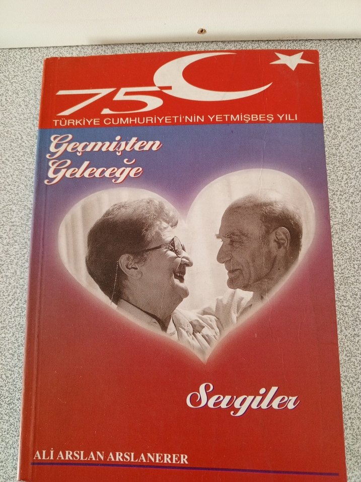 Türkiye Cumhuriyeti'nin 75. yılını anlatan, Ali Arslan Arslaner'in yazdığı 'Geçmişten Geleceğe' adlı şiir kitabı. Kapakta sevgi ve sürekliliği simgeleyen bir görsel yer alıyor. ❤️