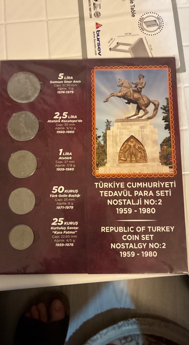 Türkiye Cumhuriyeti 1959-1980 yılları arasında basılmış nostaljik madeni paralardan oluşan set. 5 Lira, 2,5 Lira, 1 Lira, 50 Kuruş ve 25 Kuruş paraları içerir.