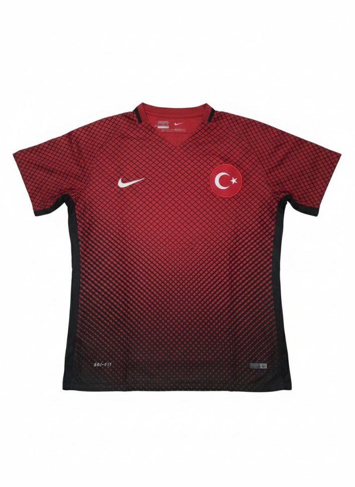 Türkiye Milli Takımı Euro 2016 Forması Modern ve İkonik Tasarım! Durumu: Çok iyi durumda, temiz ve bakımlı. Tasarım: Kırmızıdan siyaha geçen özel gradyan desenli, Euro 2016 döneminin efsane tasarımı. Kumaş: Orijinal Dri-FIT teknolojisi (terletmez, nefes alan kumaş). Kullanım: Hem koleksiyonluk hem de halı saha/günlük kullanım için idealdir.
