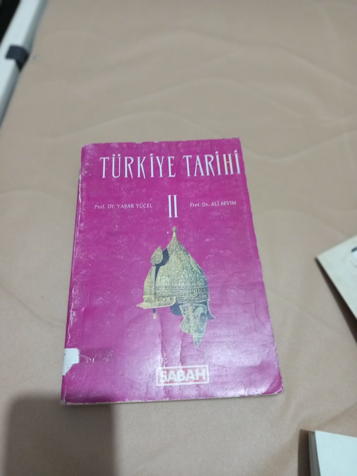 Prof. Dr. Yaşar Yücel ve Prof. Dr. Ali Sevim'in yazdığı, Sabah Yayınları'ndan Türkiye Tarihi II kitabı. Kapakta tarihi bir miğfer resmi var.