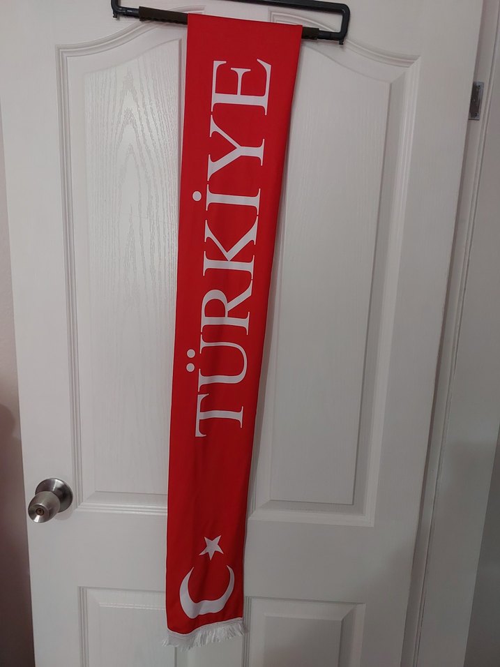Üzerinde 'TÜRKİYE' yazısı ve hilal yıldız simgesi bulunan kırmızı atkı. 3 adet mevcuttur