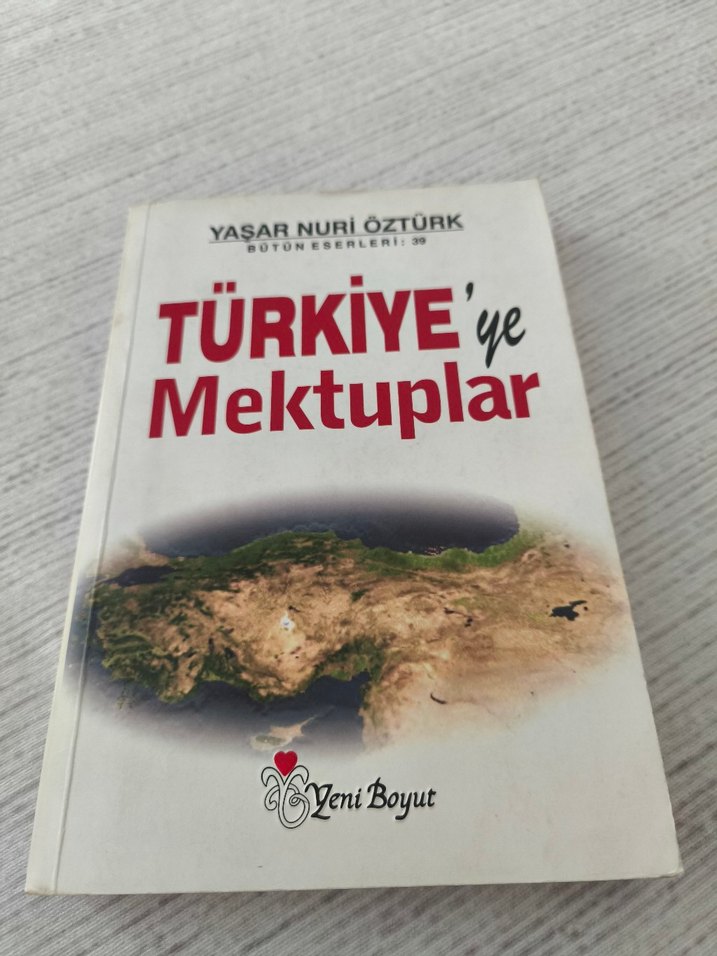 Yaşar Nuri Öztürk'ün "Türkiye'ye Mektuplar" kitabı, Türkiye üzerine mektuplar ve düşünceler içerir. Yayıncı: Yeni Boyut.
