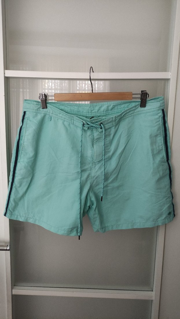 Turkuaz renkte bol kesim erkek midi şort. Rahat kesimi ve normal boyuyla plajda kullanıma uygundur. bel44 cm boy38 cm. ebv