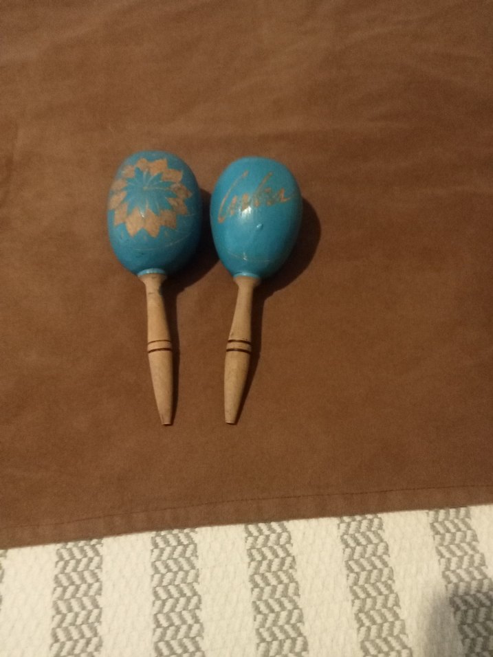 Pastel turkuaz renkte, dekoratif desenli ahşap marakas müzik oyuncağıdır. Kulpları doğal ahşap rengindedir ve kolay tutuş sağlar.