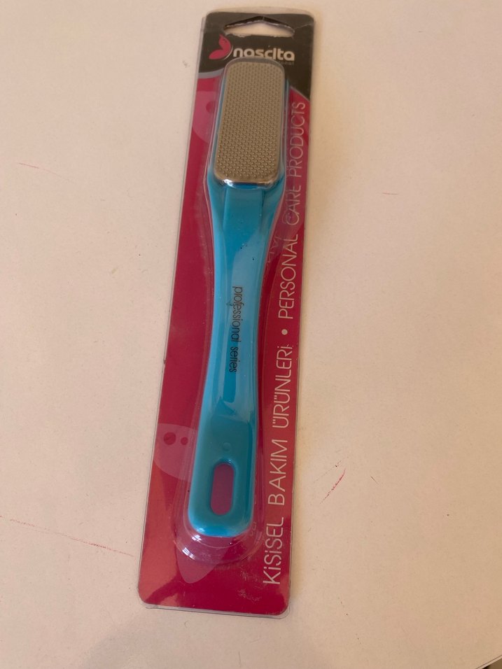 Renkli saplı, ayakları pürüzsüzleştirmek için tasarlanmış turkuaz ayak törpüsü.