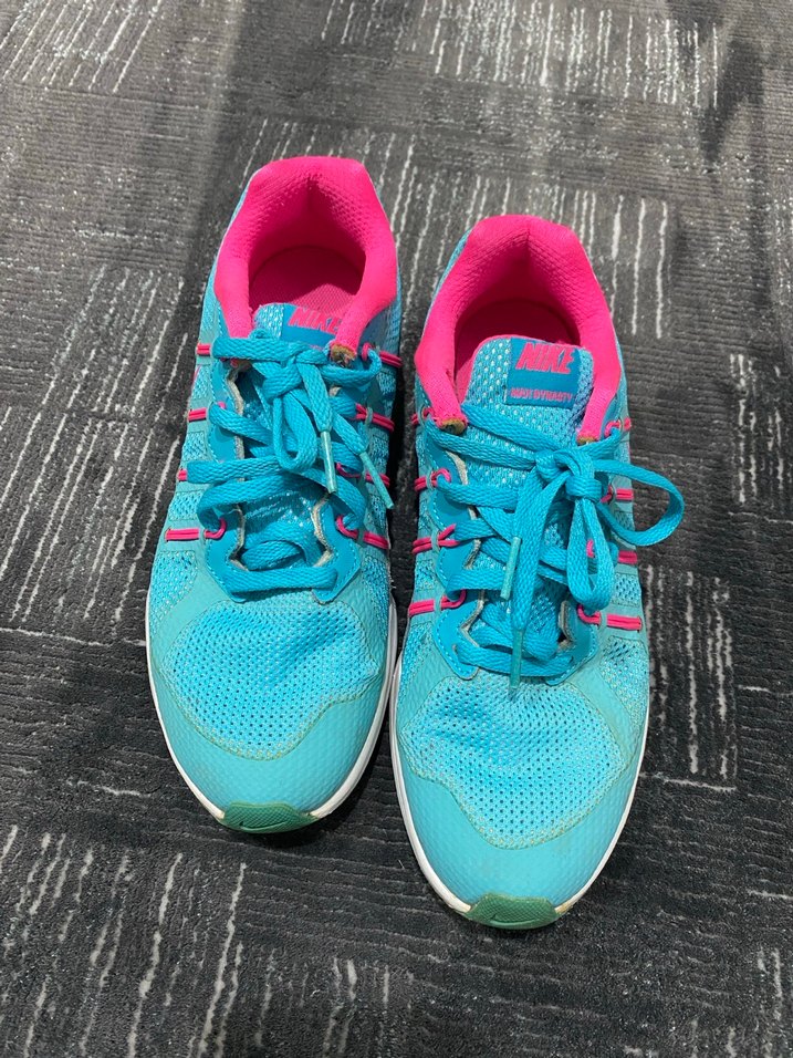 Turkuaz renkte, bağcıklı ve yüksek topuklu kadın spor ayakkabısı. Kauçuk malzemeden üretilmiş, renkli ve rahat sokak stili için uygundur.