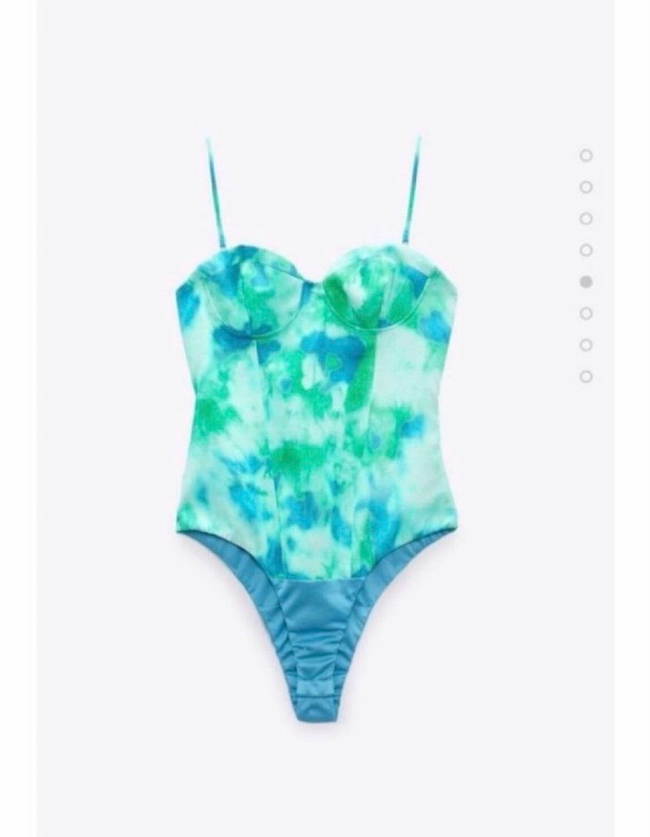 Pastel turkuaz bağlamalı, düğmeli ve ince askılı, midi uzunlukta kadın mayo. Sahil için şık ve athleisure tarzında. ️