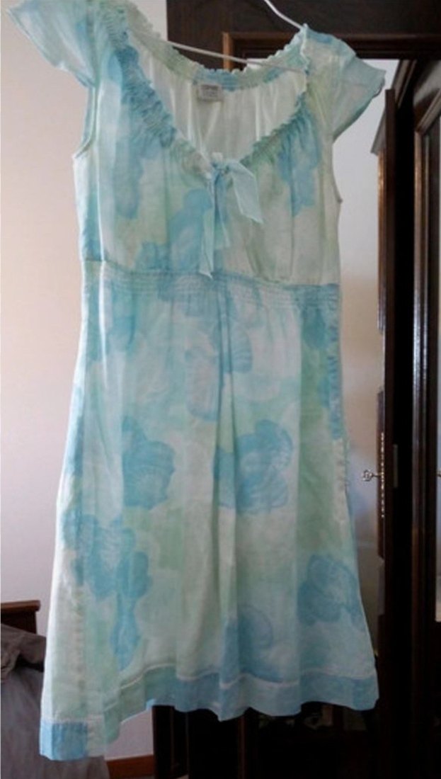 Turkuaz bağlamalı, şeffaf pamuklu kumaştan yapılmış, midi boyda, bol kesim Pastel tonlarda tie-dye deseni ve straplez yakaya sahiptir. Bohem tarzda, günlük kullanıma uygundur. Ölçüleri iki koltuk arası 50 bel 42 boy 88 santimdir.