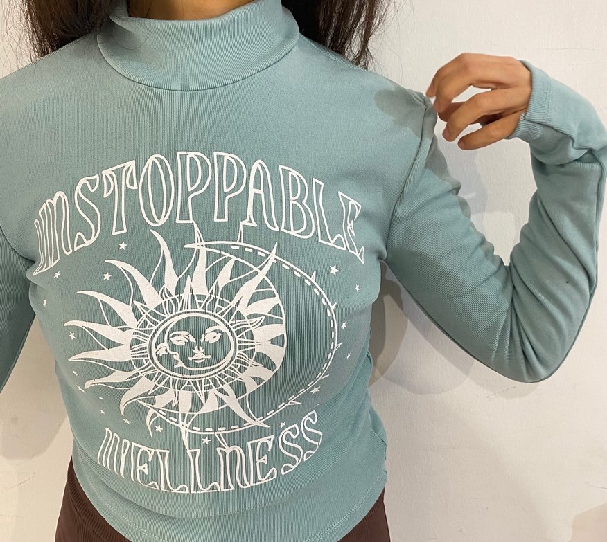 Turkuaz renkte, yumuşak ve sıcak kumaştan, baskılı, yaka dik, uzun kollu, bohem tarzda, dar kesim hamile bluzu. Günlük rahat kullanıma uygundur.