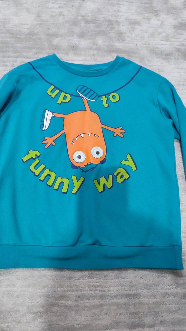 Turkuaz renkli, baskılı ve düğmeli detaylara sahip erkek çocuk sweatshirtü. Rahat kesimli, uzun kollu ve yuvarlak yakalı, yumuşak fleece kumaştan üretilmiştir.