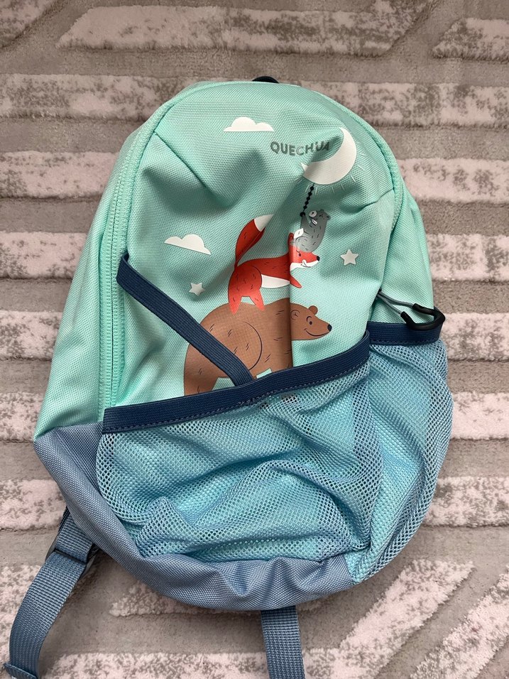 Turkuaz Baskılı Fermuarlı Çocuk Sırt Çantası