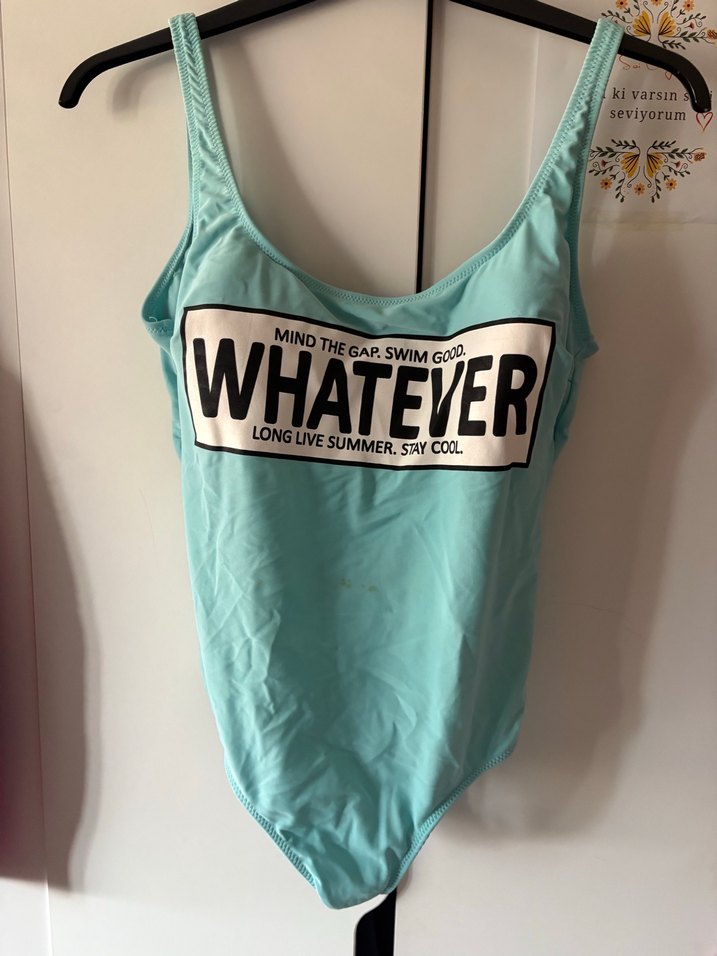 Turkuaz renkli, baskılı ve kolsuz kadın mayo. Vücuda oturan kesimi ve pastel tonu ile rahat, şık bir plaj stili sunar. ️