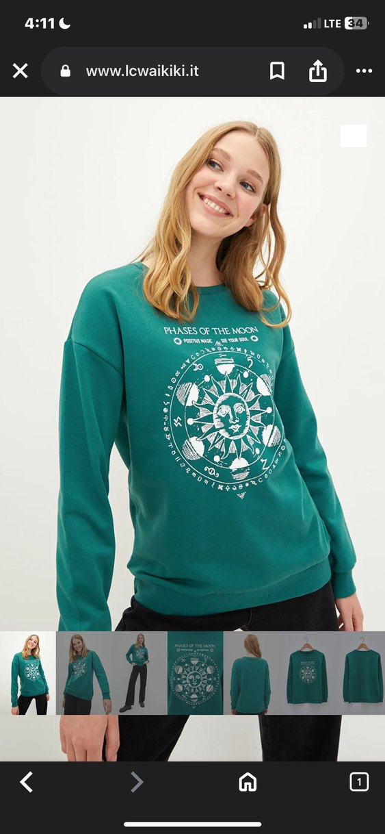 Lcw su yeşili, bisiklet yaka ve uzun kollu, baskılı, xs, rahat kesim örme kumaştan günlük kullanıma uygun kadın sweatshirtü. İkinci ve üçüncü fotoğraftaki renktedir.