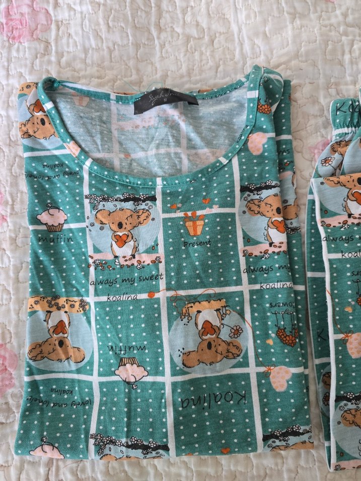 Turkuaz Baskılı Kolsuz Midi Kadın Pijama
