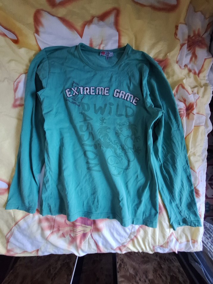 Turkuaz renkli, uzun kollu kız tişörtü. Yuvarlak yaka ve bol kesime sahip, baskılı desenli ve elastik detaylıdır. Yumuşak sentetik kumaştan üretilmiştir.